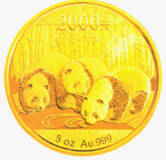 (六)5盎司圆形金质纪念币为精制币,含纯金5盎司,直径60毫米,面额2000元,成色99.9%,最大发行量5000枚。