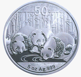 (九)5盎司圆形银质纪念币为精制币,含纯银5盎司,直径70毫米,面额50元,成色99.9%,最大发行量50000枚。