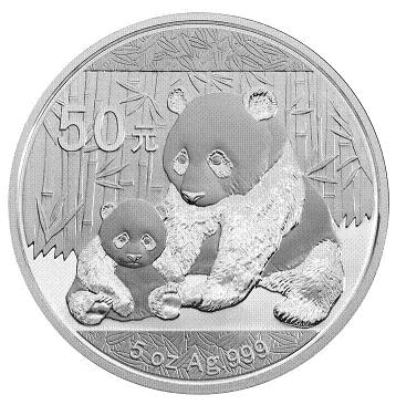 (九)5盎司圆形银质纪念币为精制币,含纯银5盎司,直径70毫米,面额50元,成色99.9%,最大发行量5万枚。