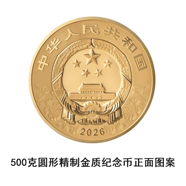 500克圆形金质纪念币为精制币,含纯金500克,直径80毫米,面额5000元,成色99.9%,最大发行量500枚。