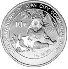 西安市商业银行成立10周年熊猫加字银质纪念币图案