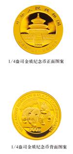 (一)1/4盎司圆形金质纪念币为普制币,含纯金1/4盎司,直径22毫米,面额100元,成色99.9%,最大发行量100000枚。