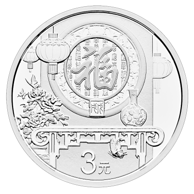 银质纪念币为普制币,面额3元,圆形,直径25毫米,含纯银8克,成色99.9%,最大发行量270万枚。