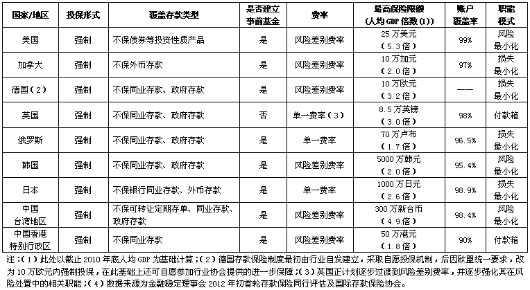 一是建立强制投保的存款保险制度,全面覆盖所有吸收存款的银行业金融机构。