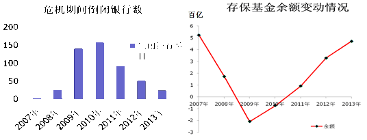 图2 2008-2013年美国银行倒闭数和存款保险基金余额变化