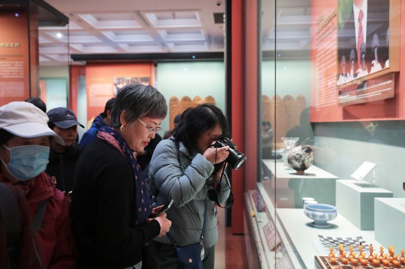 在专业讲解员的引导下,老同志们有序参观馆内陈列。这些跨越时空的珍贵展品,既是中国外交政策的“生动载体”,更是国家综合实力提升的“鲜活见证”。从体现“和平共处五项原则”的纪念摆件,到彰显“人类命运共同体”理念的艺术作品,每一件都承载着中国始终坚持独立自主和平外交政策、推动世界和平与发展的坚定立场。一位老同志感慨道:“这些国礼不仅是友谊的象征,更是党领导人民实现国家富强、民族振兴的‘成绩单’,这让我对党的领导充满信心!”