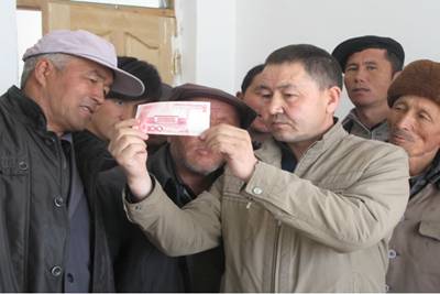 针对支行扶贫联系村地处偏远,少数民族群众反假意识不强、识假能力不高,部分少数民族群众受到假币侵害的现象时有发生,民族成份基本为哈萨克族的情况,5月26日,人行昭苏县支行青年志愿者借助昭苏县开展的“干部下基层、转变作风、服务群众”活动,深入到昭苏县阿克达拉乡呼图海村,走村入户开展了哈语反假币宣传活动。通过真假币对比等形式,向广大农牧民面对面介绍人民币的主要特征,耐心细致地向他们讲解什么是假人民币、假人民币的识别方法等基本知识;同时结合银行卡助农宣传,提倡和鼓励农牧民减少现金使用、提高和使用银行卡等结算工具,鼓励村民举报假币犯罪,积极上缴假币,增强农牧区群众的人民币反假意识和技能。