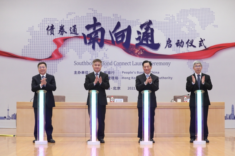 按照党中央、国务院决策部署,自2021年9月24日起,内地与香港债券市场互联互通南向合作(以下简称“南向通”)正式上线运行。9月24日上午,人民银行与香港金管局共同举办“南向通”启动仪式,中国人民银行副行长潘功胜、国务院港澳事务办公室副主任邓中华、香港特别行政区行政长官林郑月娥、香港财政司司长陈茂波、香港金融管理局总裁余伟文、中国工商银行董事长陈四清先后致辞。中央人民政府驻香港特别行政区联络办公室副主任尹宗华和国务院相关部委、香港财经事务及库务局、香港证监会、两地基础服务机构和市场机构有关人士出席启动仪式。