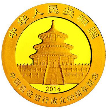 中国人民银行定于2014年7月31日发行中国建设银行成立60周年熊猫加字金银纪念币一套。该套金银纪念币共3枚,其中金币2枚,银币1枚,均为中华人民共和国法定货币。