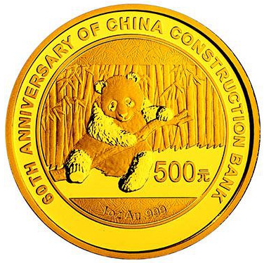 中国建设银行成立60周年熊猫加字金银纪念币图案