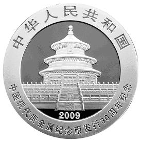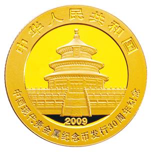 中国人民银行定于2009年6月30日发行中国现代贵金属纪念币发行30周年熊猫加字金银纪念币一套。该套纪念币共2枚,其中金币1枚,银币1枚,均为中华人民共和国法定货币。