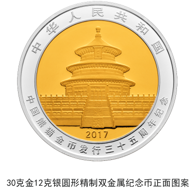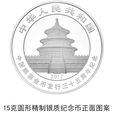中国人民银行定于2017年6月15日发行中国熊猫金币发行35周年金银纪念币一套。该套纪念币共3枚,其中金银双金属纪念币1枚,金质纪念币1枚,银质纪念币1枚,均为中华人民共和国法定货币。