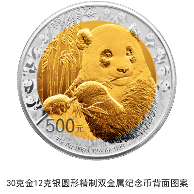 30克金12克银圆形双金属纪念币为精制币,含纯金30克,含纯银12克,直径45毫米,面额500元,成色99.9%,最大发行量6000枚。
