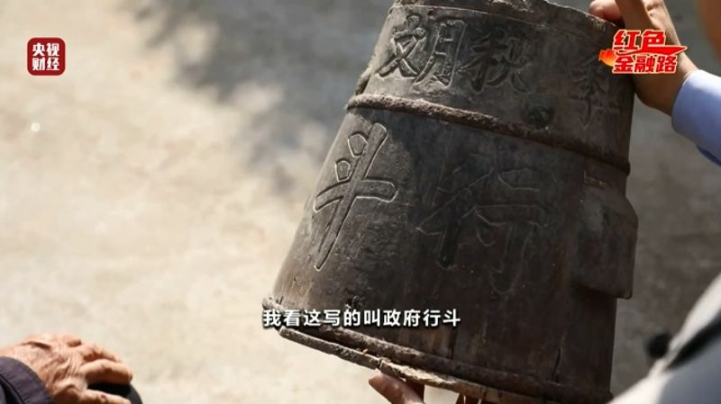 为了了解当时的情况,记者辗转找到了当时柴山洲特别区第一农民银行经理文海南的后人文尔龙的家。文先生家里至今还珍藏着当年银行的度量衡——“公平斗”,上面写着“政府行斗”当年就用它用来装谷子,用来平粜,相当于是一个量斗。