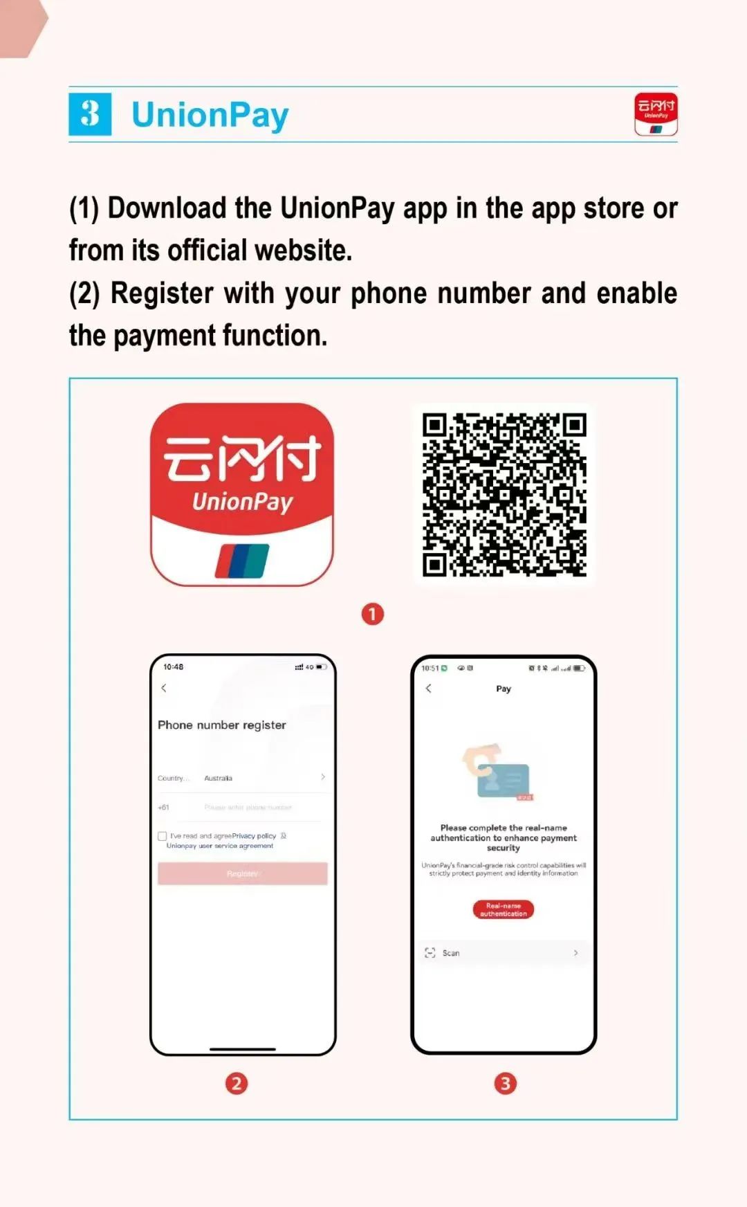 You can use UnionPay, Alipay, WeChat and some overseas electronic wallets for convenient mobile payment. Come and experience it!