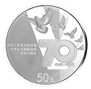 155.52克(5盎司)圆形精制银质纪念币背面图案 中国人民抗日战争暨世界反法西斯战争 胜利70周年普通纪念币图案